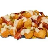 Fries with bacon, queso and green chiles
