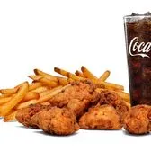 Hand-breaded chicken nuggets, marinated in buttermilk, and fried to perfection served with fries and a 20oz drink. Always gluten-free!