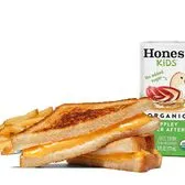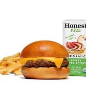 A kid-sized slider made from 100% all-natural beef. Served with a choice of fries, tater tots, sweet potato fries, applesauce or fruit cup and a 12oz drink, milk or apple juice.