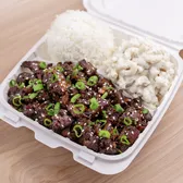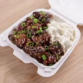Savory chicken infused with fresh garlic, green onions and sesame. Comes with rice, mac salad and 2 signature teriyaki sauce packetS.
