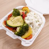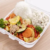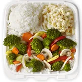 Mix of fresh vegetables with our own spice blend. Comes with rice, mac salad and 1 signature teriyaki sauce packet. Seasonal vegetable selection may vary based on availability.
