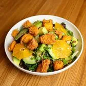 greens, shaved cabbage, carrot, cucumber, toasted almonds, orange, avocado, green onion, honey – mustard vinaigrette