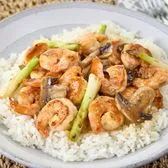 Grilled shrimp served over rice with scallions and topped with sesame seeds. Served with Teriyaki sauce.