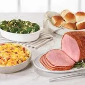 This meal includes a half Honey Baked Boneless Ham - the easy to serve crowd pleaser, as well as includes two of our frozen Heat & Serve Side Dishes: Loaded Smashed Potatoes and Tuscan-Style Broccoli (1 package of each), and one package of King's Hawaiian Rolls (12 count). Serves 6-8.