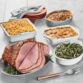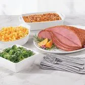 Enjoy a Signature Honey Baked Ham Meal this holiday season! This meal includes a Bone-in Half Ham (8 lb.) which is handcrafted in store with our signature sweet & crunchy glaze. Meal also includes your choice of four of our frozen Heat & Serve Side Dishes. To ensure serving all of your guests, we recommend ordering 2 packages of only 2 different varieties.