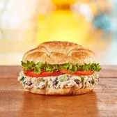 Freshly made Chicken Salad with lettuce and tomato on a flaky croissant