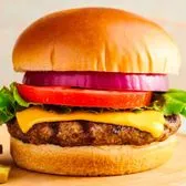 Two half-pound patties on a toasted bun topped with lettuce, tomato, onion, and your choice of cheese. 1690-1910 cal
