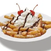 Bring sweetness to your taste buds with powdered sugar and whipped cream-topped funnel fries. Served with your choice of chocolate or raspberry drizzle and topped with cherries.