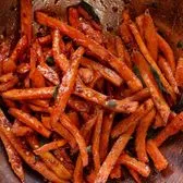 Sweet Potato Fries tossed with Hot Honey Sauce & Crispy Sage. This item is gluten friendly. If you have an allergy, please let the kitchen know.