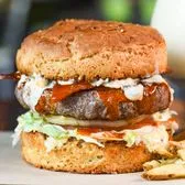 Grilled Chicken Patty, Steakhouse Bacon, White American Cheese, Crispy Onions, Ranch Slaw, Chipotle Aioli & Pickles