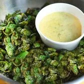 Crispy brussels sprout leaves tossed with buffalo sauce, served with side of blue cheese dipping sauce