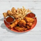 Bone-in wings tossed in any sauce and hand-breaded chicken tenders with natural cut fries.
