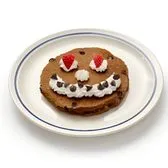 Choice of chocolate or buttermilk pancake filled with chocolate chips. Topped with whipped topping, a chocolate chip smile & strawberry eyes.