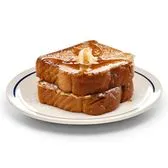 Two slices of bread dipped & griddled in new vanilla, cinnamon French toast batter & topped with butter & powdered sugar.