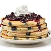 Four buttermilk pancakes filled with blueberries & topped with blueberry topping.