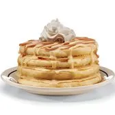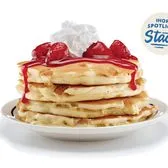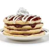 Four buttermilk pancakes layered with cinnamon roll filling & topped with cream cheese icing.