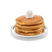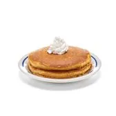 2 pumpkin spice pancakes made with real pumpkin & seasonal spices and crowned with creamy whipped topping.