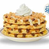 Try our new IHOP’s Spotlight Stack™ flavor! 4 buttermilk pancakes filled with cinnamon streusel and layered with cinnamon spread then topped with cream cheese icing, more streusel & whipped topping.