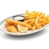 2 crispy battered fish served with French fries, tartar sauce & a lemon wedge.