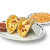Two tacos filled with fluffy scrambled eggs†, hickory-smoked bacon, a four-cheese blend, and white cheese sauce. Served with salsa.