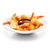 10 crispy battered shrimp served with cocktail sauce & a lemon wedge.