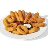 Four perfectly crispy & melty Mozzarella cheese sticks, Onions Rings & four Buttermilk Crispy Chicken Breast Strips made with all-natural chicken. Served with marinara & choice of honey mustard, ranch or IHOP® Sauce.