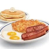 Two jumbo smoked sausage links served with 2 eggs* your way, hash browns & 2 buttermilk pancakes.
