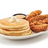 Four buttermilk crispy chicken strips made with all-natural chicken breast & 3 buttermilk pancakes. Served with choice of sauce.
