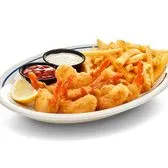 10 crispy battered shrimp served with French fries, cocktail sauce, tartar sauce & a lemon wedge.