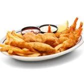 2 crispy battered fish & 5 crispy shrimp served with French fries, cocktail sauce, tartar sauce & lemon wedge.