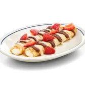 2 crepes filled & rolled with scrambled eggs‡, hickory-smoked bacon, crispy hash browns, white cheese sauce & jack & cheddar cheeses.