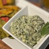 A masterful blend of spinach, artichoke hearts, and our own special combination of herbs and spices served with organic multi-colored chips.