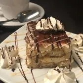 The perfect finish to a great Italian meal, our delicious Tiramisu is served with chocolate and vanilla syrup and whipped cream on top.