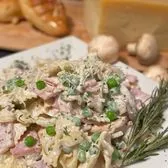 Known as “Charcoal Burner’s Spaghetti," this traditional dish originated in the Appenine mountains of Rome. Our version offers a delicious combination of ham, bacon, fresh mushrooms, white onions, peas, and egg yolks all sautéed in heavy cream with bowtie pasta and llario’s alfredo sauce.
