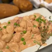 Classic Italian potato pasta served with ham, green peas, and fresh mushrooms then topped off with our homemade alfredo, vodka or marinara sauce.