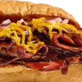 ½ pound of freshly sliced East Texas slow smoked beef brisket with melted cheddar, red onions and barbecue sauce, toasted on New Orleans French Bread! Choose a Full or Half sandwich, or enjoy our Manager's Special - a Half sandwich served with your choice of soup, fruit, or Mac & Cheese.