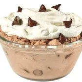 Creamy chocolate mousse blended with chocolate chips, topped with fresh whipped cream and a sprinkle of more chips.