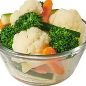 A healthy blend of steamed broccoli, cauliflower, zucchini and organic baby carrots.