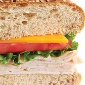 Our roasted turkey breast is nitrite-free, 98% fat-free and sliced fresh daily. Served on Gluten-Free Bread, select your spreads and dress it up; served with chips or baked chips and a pickle. Choose a Full, Half, or Lighter Portion sandwich, or enjoy our Manager's Special - a Half sandwich served with your choice of soup, fruit, or Mac & Cheese.