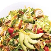 Grilled chicken breast, mixed salad greens, cheddar, grape tomatoes, chopped avocado, roasted corn and black bean mix, served with jalapeño ranch dressing.