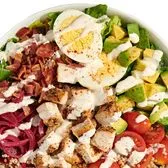 Grilled, 100% antibiotic-free chicken breast, organic quinoa, romaine lettuce, chopped bacon, tomato, pickled red onions, hard-boiled egg, Southwest spices, Ranch dressing, chopped avocado.
