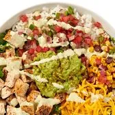 Grilled, 100% antibiotic-free chicken breast, romaine lettuce, rice, pico de gallo, roasted corn and black bean salad and guacamole, cheddar, jalapeño ranch dressing, Southwest spices