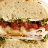Grilled, 100% antibiotic-free chicken breast, provolone, pesto aioli, Roma tomatoes, organic spinach, on sourdough bread (790 cal). Served with chips (150-160 cal) or baked chips (110 cal) and a pickle (5 cal). Choose a Full or Half sandwich, or enjoy our Manager's Special - a Half sandwich served with your choice of soup, fruit, or Mac & Cheese.