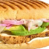 Grilled, 100% antibiotic-free chicken breast, sliced avocado, lemon crema, chipotle aioli, jalapeno pepper jack, pickled red onions on a traditional Mexican-style roll (930 cal). Served with blue corn chips and salsa (250 cal). Choose a Full or Half sandwich, or enjoy our Manager's Special - a Half sandwich served with your choice of soup, fruit, or Mac & Cheese.