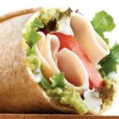 Roasted turkey breast, Roma tomatoes, organic field greens, guacamole, ranch dressing, in a toasted organic wheat wrap. Choice of one side: fresh fruit, steamed veggies, baked chips, or blue corn chips with salsa. Choose a Full or Half sandwich, or enjoy our Manager's Special - a Half sandwich served with your choice of soup, fruit, or Mac & Cheese.