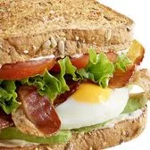 Bacon, leafy lettuce, Roma tomatoes, fresh-cracked egg,* mayo, avocado slices, toasted multigrain wheat. Served with chips (150-160 cal) or baked chips (110 cal) and a pickle (5 cal). *NOTE: Eggs are served medium. Consuming raw or undercooked meats, poultry, seafood, shellfish, or eggs may result in an increased risk of foodborne illness. Choose a Full or Half sandwich, or enjoy our Manager's Special - a Half sandwich served with your choice of soup, fruit, or Mac & Cheese.