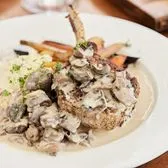 chicken scallopine in a white wine caper sauce over sautéed spinach