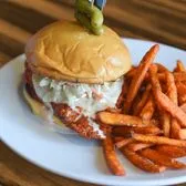 Grilled or fried all-natural chicken breast. Cajun hot sauce, avocado, mozzarella cheese, coleslaw, jalapeno remoulade, grilled challah bun.