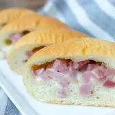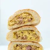 Breakfast style with diced ham, scrambled eggs & American cheese.
