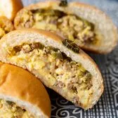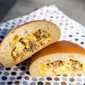 Breakfast Style with crumbled breakfast sausage, scrambled egg, American cheese & jalapeno.